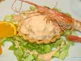 Ingredientes: Salsa rosa 400 gr. de gambas 100 gr. de arroz cocido 100 gr. de piña fresca cortada en daditos. Unas hojas de lechuga corta en juliana 4 rodajas...
