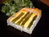 Ingredientes: 1 plancha de hojaldre 200 g queso Manchego semi-curado 1 manojo de espárragos verdes 1 boletus hermoso 1/4 kg gambas frescas peladas Sal y...