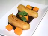 Ingredientes: 20 huevos de codorniz 100 g de chorizo Romero fresco Para la tempura: 1 huevo de gallina 100 ml de agua fría Sal Para freir: Aceite de oliva Salsa...