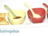 Ingredientes: Un bloque de queso feta Láminas de Pasta filo ó pasta brie u hojas de brick Orégano Aceite de oliva Pimentón dulce Salsa tzatziki Salsa chutney