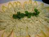 Ingredientes: endivias 2 o 3 pepinos Un diente de ajo sal y pimiena blanca aceite de oliva extra virgen vinagre Hierba buena (o menta) 2 yogures naturales